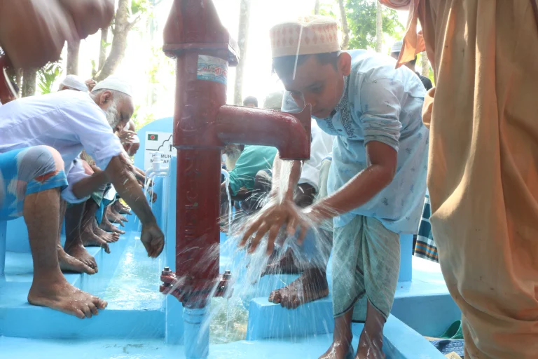 İyiliği Hisset olarak Bangladeş’in Dakka şehrine 110 km uzaklıkta, Tangail bölgesinde yer alan ve temiz suya büyük ihtiyaç duyan bir köyde Hz. Muhammed Mustafa (S.a.v.) adına bir su kuyusu açılışını gerçekleştirdik. Bu kuyu, köy halkının temiz suya ulaşmasını kolaylaştırarak onların yaşam koşullarını büyük ölçüde iyileştirdi. Daha önce temiz su kaynaklarından oldukça uzakta olan köy, artık günlük su ihtiyaçlarını kolaylıkla karşılayabilir hale geldi.